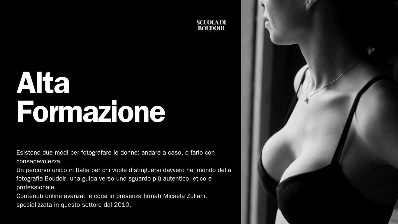 Dalla teoria alla pratica, dalla tecnica alla regia fotografica: Scuola di Boudoir propone percorsi formativi pensati per chi vuole andare oltre la fotografia standard.