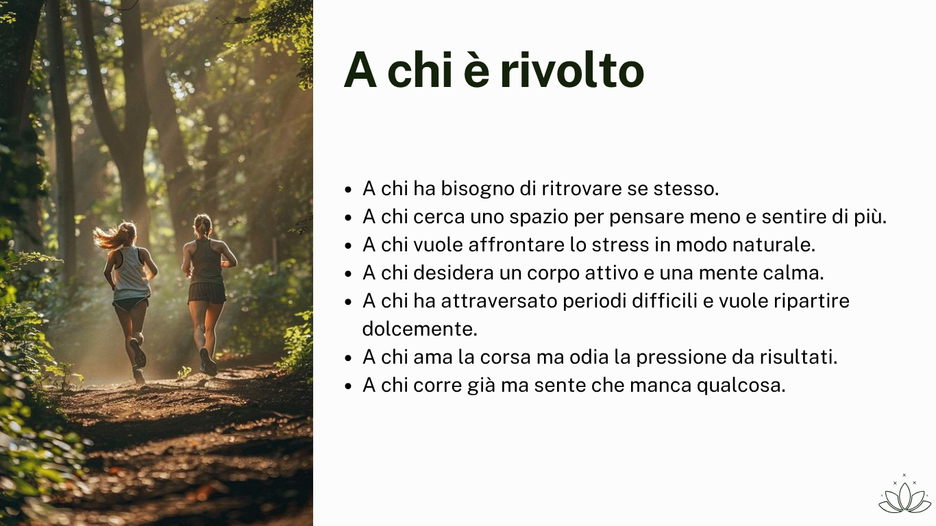 Non serve cambiare stile di corsa, ma presenza: nella mente, nel corpo, nel respiro. Si tratta di un approccio diverso alla corsa, accessibile a tutti: dai runner più esperti a chi inizia con il desiderio di ascoltarsi.