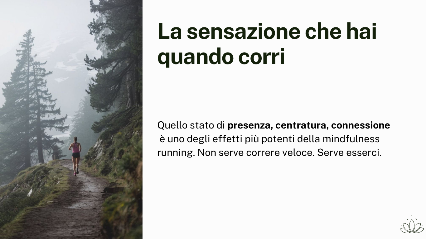 Quello stato di presenza, centratura, connessione è uno degli effetti più potenti della mindfulness running. Non serve correre veloce. Serve esserci.